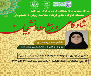 13996 محل برگزاری نمازخانه خوابگاه کوثر 4 سلسله کارگاه های نشاط و شادکامی دانشجویان خوابگاه کوثر شناسه : 4798023