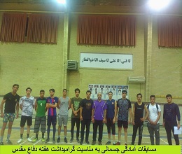 10279 برگزاری مسابقات آمادگی جسمانی به مناسبت هفته دفاع مقدس یک دوره مسابقات آمادگی جسمانی به مناسبت هفته دفاع مقدس با حضور دانشجویان (در بخش آقایان) برگزار گردید. شناسه : 5084142