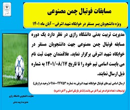 8152 برگزاری مسابقات داژبال و هند بهکاپ به مناسبت هفته تربیت بدنی ویژه کارکنان یک دوره مسابقات داژبال و هند بهکاپ به مناسبت هفته دفاع مقدس با حضور یاوران علمی و اعضای هیات علمی (در بخش بانوان)...