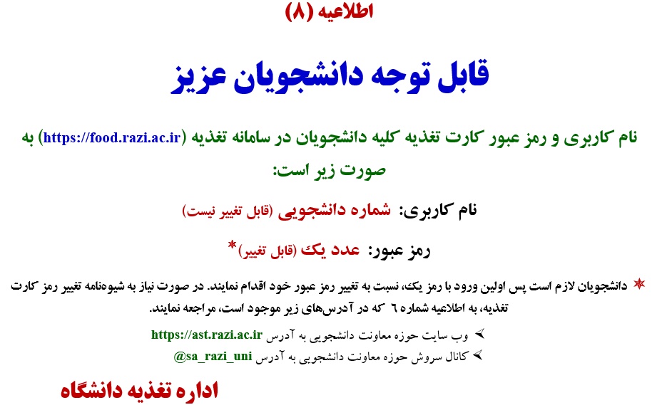 قابل توجه کلیه دانشجویان: نحوه رزرو غذا