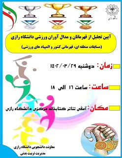 12238 به مناسبت عید سعید قربان تعطیلی استخر دانشگاه در پنج شنبه مورخ 1402/04/08 در تایم های آموزشی و عمومی به اطلاع دانشگاهیان عزیز می رساند: به مناسبت عید سعید قربان تمامی تایم های آموزشی و عمومی...