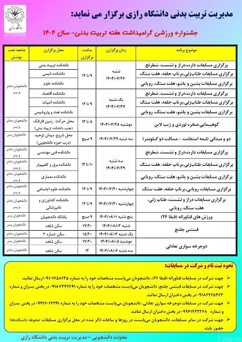 جشنواره ورزشی گرامیداشت هفته تربیت بدنی 1404 ویژه دانشجویان دختر و پسر