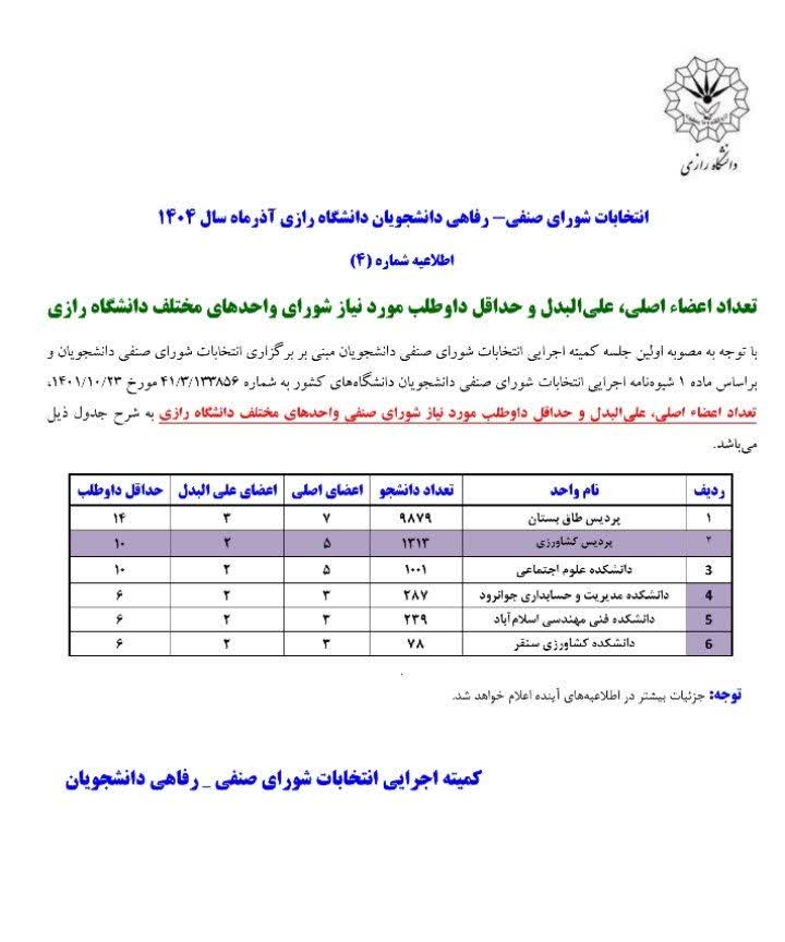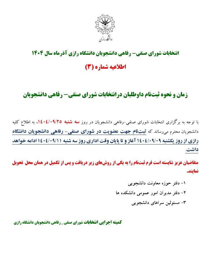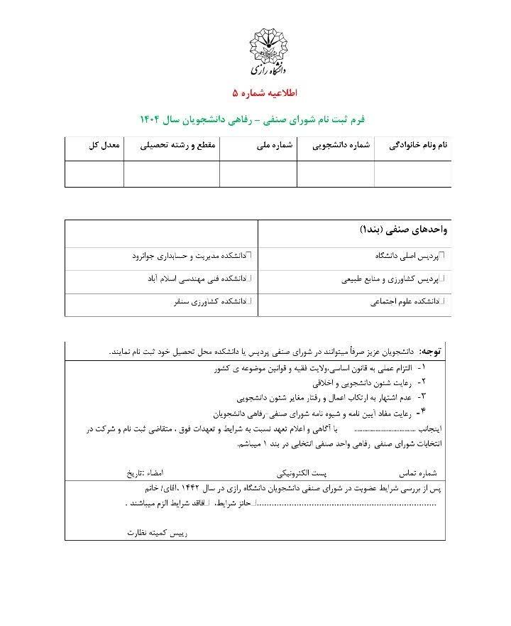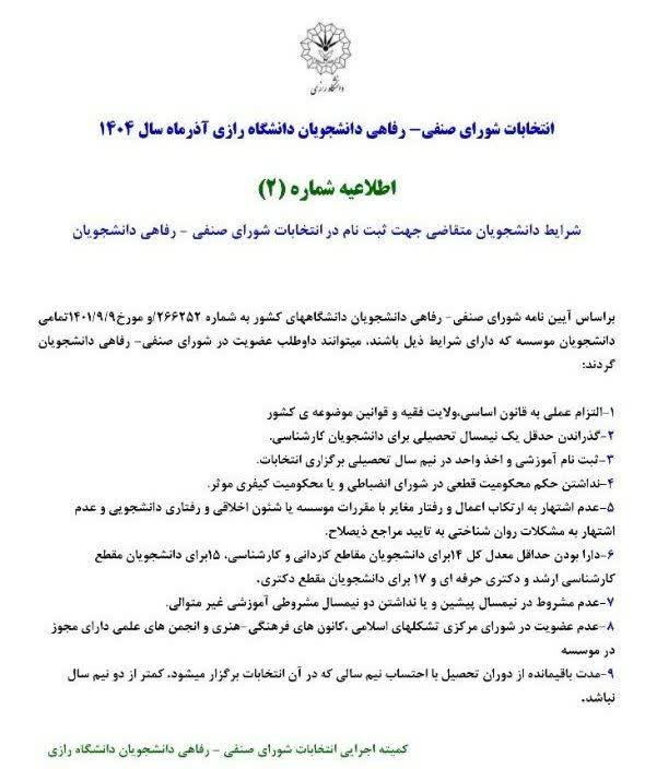 انتخابات شورای صنفی _ رفاهی دانشجویان دانشگاه رازی آذرماه سال ۱۴۰۴