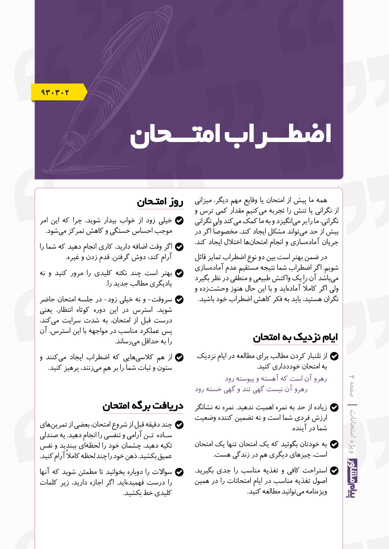 ۱-برای امتحان آماده شوید   ۲-فضایتان را سازمان دهید  ۳-یادگیری فعال داشته باشید   ۴-تمرین کنید