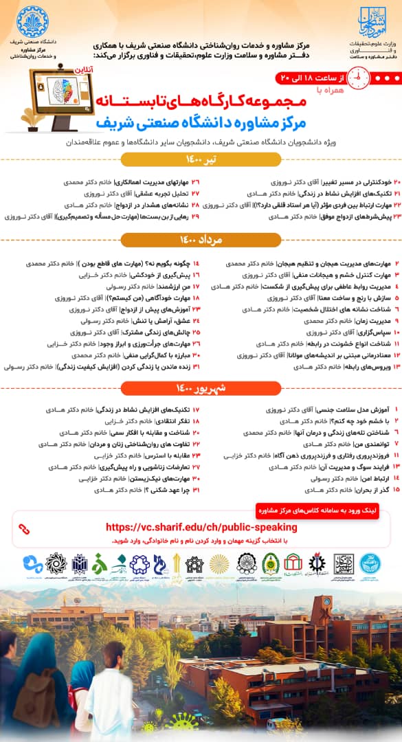 وبینارهای مرکز مشاوره دانشگاه تهران و صنعتی شریف درتابستان 1400