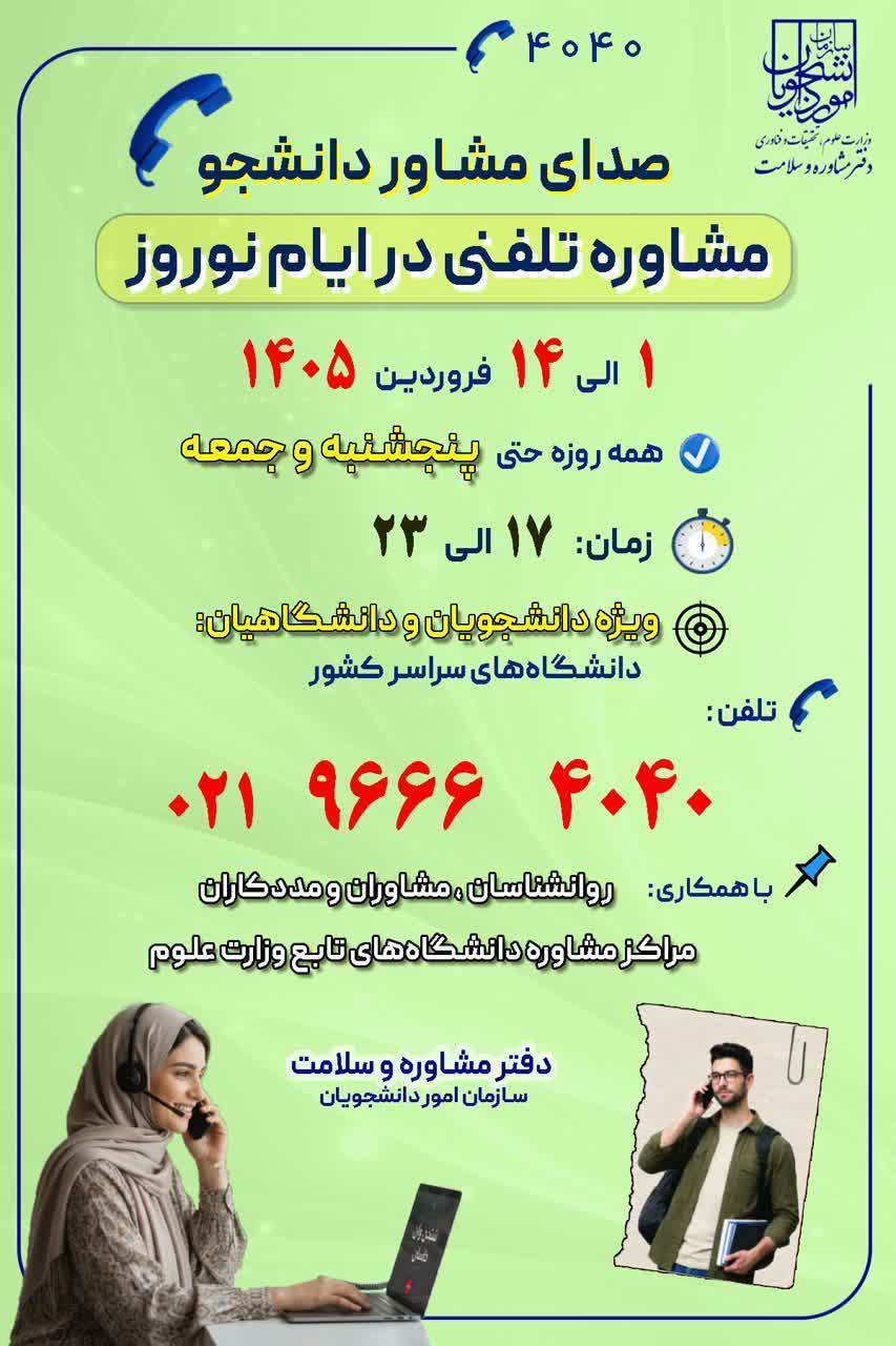مشاوره تلفنی در ایام نوروز - معاونت دانشجویی