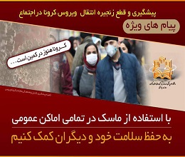 65551 با توجه به شیوع سویه جدید کرونا پیام های ویژه کرونا با توجه به شـیوع سویه جدید ویروس کرونا و احتمال سـرایت پذیري بیشتر این سویه، شیوه نامه هاي بهداشتی از جمله اسـتفاده از ماسک و رعایت بهداشت...