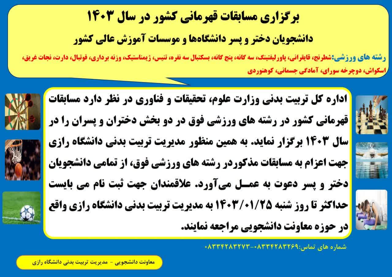 برنامه فعالیت های فوق برنامه مدیریت تربیت بدنی دانشگاه رازی - نیمسال دوم 1403-1402