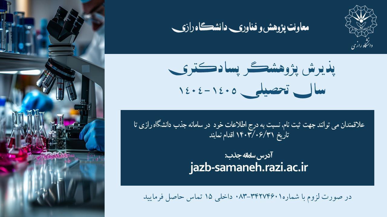 28327 اطلاعیه اداره امور خوابگاههای دانشگاه رازی در خصوص پذیرش واسکان دانشجویان جدیدالورود اطلاعیه اداره امور خوابگاههای دانشگاه رازی در خصوص پذیرش واسکان دانشجویان جدیدالورود روزانه 403-404: ضمن...